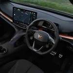 Cupra Tavascan iç mekânı, markanın yeni tasarım dilini yansıtan futuristik bir yapıya sahiptir. Büyük merkezi ekran, dijital gösterge paneli ve minimalist konsol tasarımı dikkat çekmektedir.